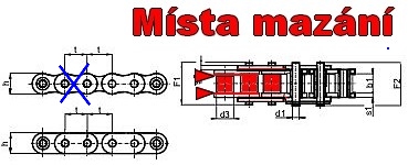 Kluznou plochu mezi čepem a pouzdrem řetězu máme ošetřenu mazivem, u okroužkového řetězu, již z výroby. Před snýtováním je pod tlakem natlačeno mazivo mezi čep a pouzdro, utěsněno na obou koncích pouzdra okroužkem a uzavřeno snýtováním. Protože pouzdro je nalisováno do vnitřní desky s malým přesahem, je kroužek zachycen na tomto přesahu, čímž je zajištěna jeho poloha, a z obou stran stlačen destičkami řetězu. Tlak destiček na kroužek je způsoben roznýtováním čepu na obou koncích. Popisuji to takto zevrubně, abychom si uvědomili, že pokud jsou kroužky v pořádku, je prakticky nemožné dopravit do této části řetězu mazivo.